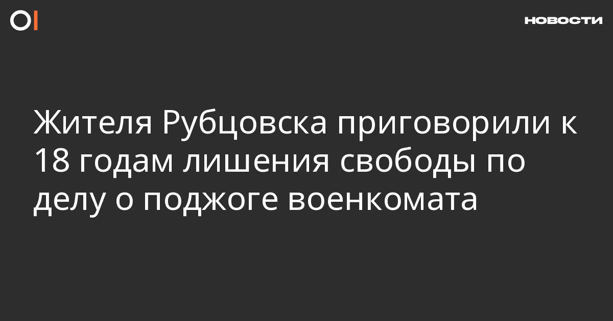 2-й Восточный окружной военный суд назначил 18 лет лишения свободы 26-летнему Виталию Пирогову, признанному виновным в поджоге военкомата в Рубцовске. Об этом сообщает пресс-служба суда.