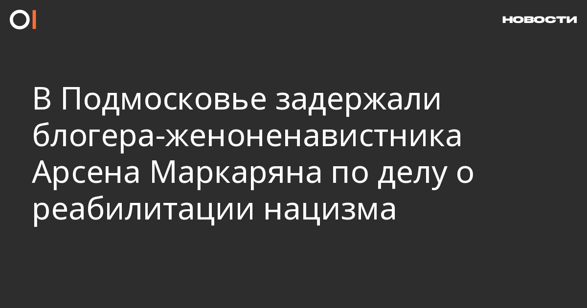 Силовики задержали автора блога о личностном росте и женоненавистника Арсена Маркаряна по делу об реабилитации нацизма в виде оскорбления памяти защитника Отечества (ч. 4 ст. 354.1 УК). Об этом сообщают ряд СМИ, а также телеграм-канал СК России.