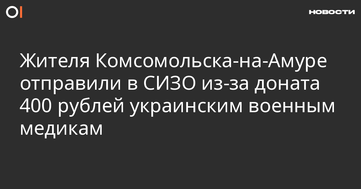 В Комсомольске-на-Амуре против сотрудника торговой компании Александра Сарбаева возбудили дело о госизмене (ст. 275 УК) — его обвиняют в переводе 400 рублей украинским военным медикам в феврале 2022 года. Об этом Сарбаев рассказал «Медиазоне» в письме из СИЗО.