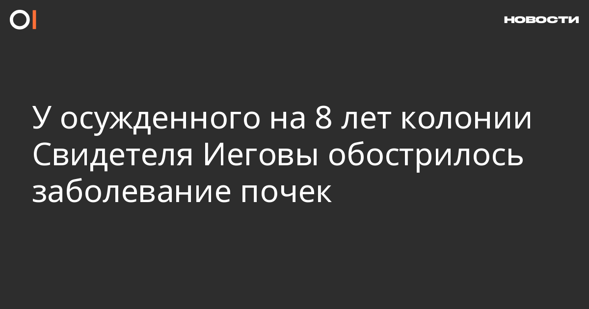 У осужденного на восемь лет колонии Свидетеля Иеговы Рустама Диарова в заключении обострилось хроническое заболевание почек. Об этом пишет портал «Свидетели Иеговы. Юридическая ситуация в России».