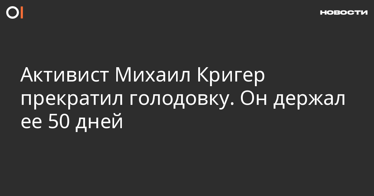 Кригер находится в ИК-5 в Орловской области. Он объявил голодовку, чтобы добиться перевода в общий отряд. Активист с 9 сентября изолирован от других осужденных: сначала его помещали в ШИЗО, а затем оставили в такой же одиночной камере под предлогом обеспечения его безопасности.